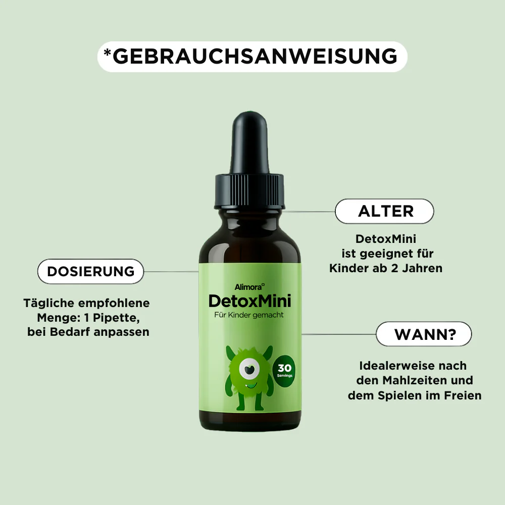 DetoxMini ist speziell fur Kinder entwickelt, um den Korper sanft von Parasiten,Schwermetallen und anderen schadlichen Stoffen zu reinigen.
